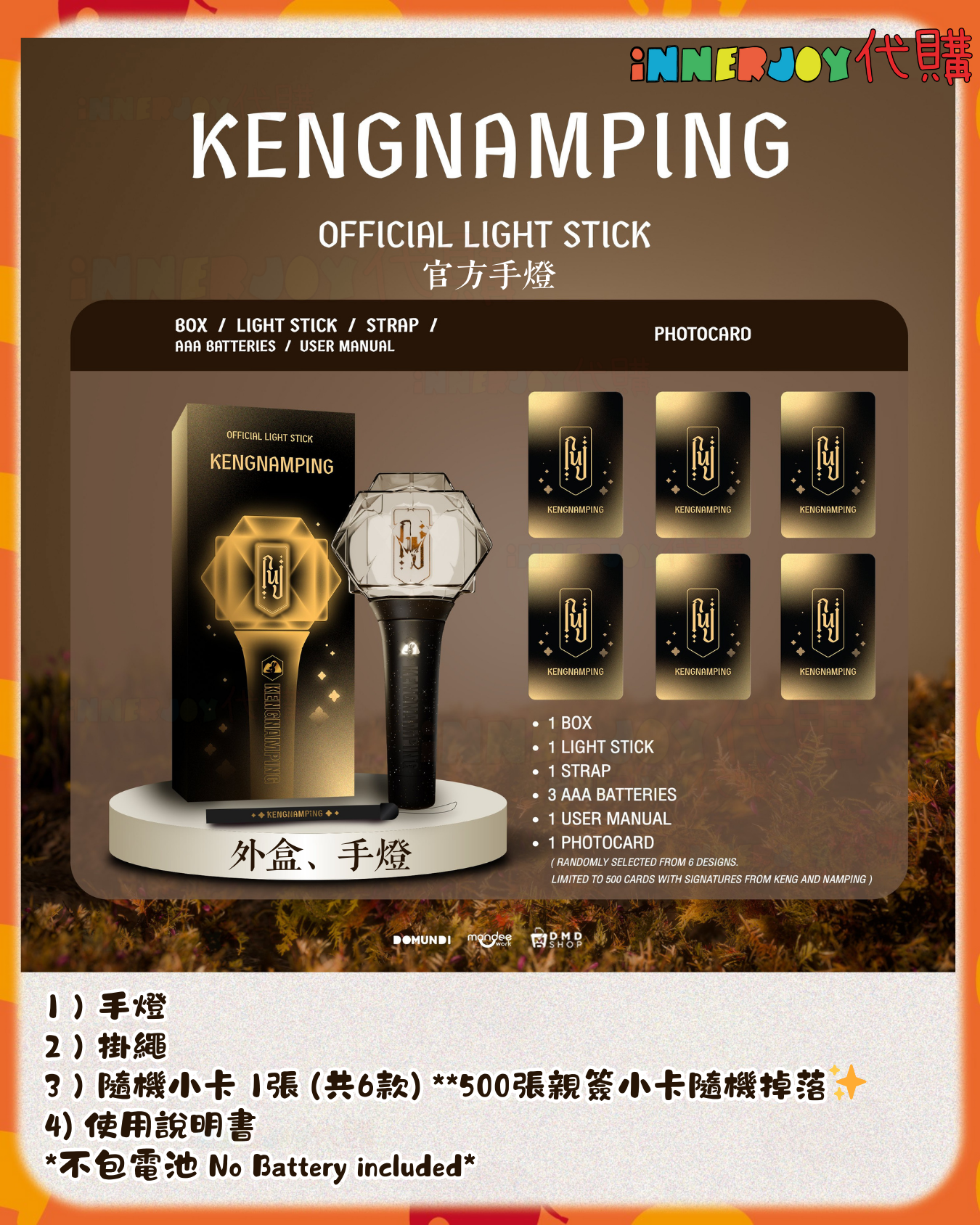 KengNamping代購 KengNamping Official Light Stick 🦆🐰✨ DMD Official Merchandise 【✨手燈設計易折斷,需要由人手帶回,發貨時間需一個月或以上,敬請留意✨】 【溫馨提示:手燈內部易折斷,使用時請小心!】 【可選擇發貨方式:】 1️⃣ 1月17或18號現場交收 ⚠︎名額有限 2️⃣ 香港本地自取 ⚠︎ 由於手燈設計較易出現折斷情況,因此本次代購不提供速遞發貨及非香港地區發貨。Only For Pick-Up and Hong Kong Domestic Order. 【商品介紹】 1)手燈 2)掛繩 3)隨機小卡 1張 (共6款) **500張親簽小卡隨機掉落✨ 4) 使用說明書 *不包電池 No Battery included* 【使用方式】 開啟:按一下按鈕 關閉:長按按鈕3秒 轉換手燈顏色:開啟後,按一下按鈕可不斷轉換顏色 【Spec規格細節】 • Product : KengNamping Official Light Stick • Model : KNPOLS01 • Material : ABS and PC Plastic • Power Supply : 3 x AAA Alkaline Batteries • LED : RGBW LED ( 15 Colors ) • Light Stick Size : 26 x 13 cm • System : Manual Operation Mode and Central Control 📍由於DMD商品品質不良,所有DMD代購商品均須拆開檢查並完成售後處理才能發貨,望知悉安排。Innerjoy貼心售後處理服務包括:二次來回泰國、泰國入境稅項、當地郵費、親身換貨等情況,Innerjoy均會為客人處理妥當,感激支持。 📌 International Customers Notice: If you are unsure about any product details, please contact us before placing your order. We’re happy to assist you! 📍最終解釋權均歸官方所有📍 ⚠️備註:裝置屏幕顯示與拍攝時的顏色可能有差異,實際產品和參考圖片可能略有不同,望知悉。 ✨由於匯率浮動,價格有機會有所更改,敬請注意 🔸🔸🔸 Deadline|截止 : 30/10/2025 18:00 Official Earliest Delivery 官方預計最早發貨:11月,由於手燈為充電式手燈,需要由人手帶回,發貨時間需一個月或以上;或有延遲,如有更改將於限時動態(Story)內公佈。 🔸🔸🔸 ✨The product content is for reference only, and subject to the actual official sales situation. 📍商品內容僅供參考,一切以官方銷售實際情況作準。 ✨代購價格已包含泰國-香港路段國際郵費,香港本地可順豐到付,或到葵廣/旺角中心格仔鋪領取 ✨信用卡/八達通/ AlipayHK/WechatPay/Tap&Go/PayMe/ApplePay/GooglePay/Paypal/FPS/銀行轉帳✨ 🟠🟠🟠 Disclaimer: If the posting content infringes or violates your copyrights, please contact us immediately. 本公司並沒有持有任何品牌之版權,所有商標及版權均屬該品牌持有人,圖片及資料轉載只作分享用途,敬請留意。