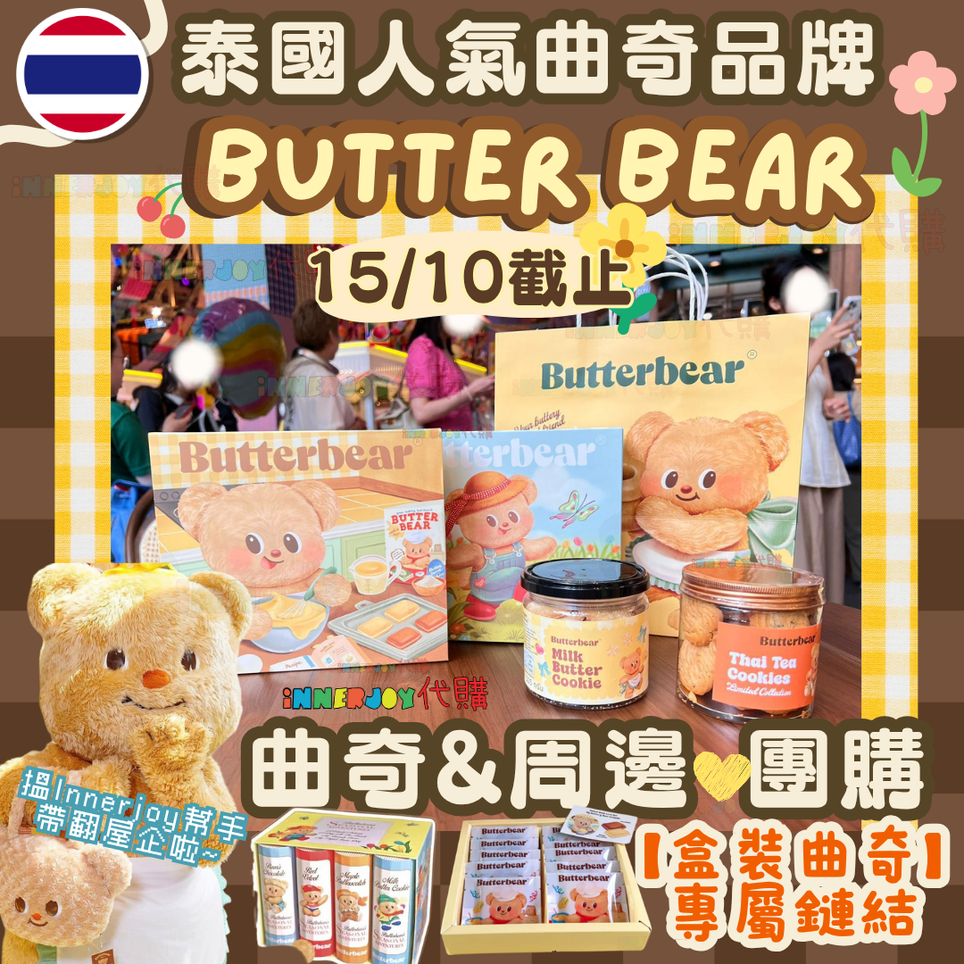特別連線購物團|泰國超人氣曲奇品牌 Butter Bear 【禮盒曲奇專屬】🎁🐻 15/10 截止 食食食玩玩玩 團購 【10 月 15 日 6PM 截單】 【10 月 13 日後 陸續發貨】 🎁【【曲奇禮盒 4款可選】】🎁 🐻Signature Butter Sandwich Cookie Set 牛油夾心曲奇 10塊 - 🍪5塊 朱古力味 🍪5塊白朱古力味 🐻Signature Butterfly Palmier Set 招牌蝴蝶酥 12塊 - 🍪3塊朱古力味🍪3塊檸檬味🍪3塊白朱古力味🍪3塊士多啤梨味 🐻Seasonal Adventure Cookies Set 季節小熊曲奇盒🌈 4小盒x不同味牛油曲奇 🧡每盒對應春夏秋冬主題🦋 -☘️ RedVelvet Cookies紅絲絨 -🌼 Bear ‘s Cookies 熊熊朱古力 -🍁 Maple Cookies -❄️ Snowy Milk Cookies 雪花牛奶曲奇 🐻Assorted Tin Box Cookies 綜合4味可愛鐵罐曲奇 含有: -🍪Bear's Chocolate Cookie 香濃朱古力曲奇 -🍪Oatmeal Cookie 燕麥曲奇 -🍪Milk Butter Snow Cookies 奶油雪沙曲奇 -🍪Maple Butterscotch Cookie 焦楓糖牛奶曲奇 🐻 🐻 近期人氣爆燈Butter Bear 🐻 🐻 🧶除左打卡able與好食度💯嘅曲奇之外 🧶 仲有好多唔同嘅實用周邊哦💖 🧶實行衣、食都比🐻包圍 🧶送比大朋友小朋友都唔會失禮 【曲奇貯存方法】建議7天-14天內食用 🐻罐裝曲奇專屬 Link:https://innerjoythailand.boutir.com/i/RdKP5lgAA 🔸🔸🔸 Deadline|截止 : 15/10/2025 18:00 Earliest Delivery 預計發貨:【10 月13號開始發貨, 20號前發貨完成】貨到即發,建議自取,以免運輸顛簸導致曲奇不完整 ✨The product content is for reference only, and subject to the actual official sales situation. 商品內容僅供參考,一切以官方銷售實際情況作準。 🔸🔸🔸 代購價格價格已包含泰國-香港段國際郵費,本地可順豐到付,或到觀塘店/葵廣格仔鋪領取 ✨接納各平台電子支付✨ ✨信用卡/八達通/AlipayHK/WechatPay/Tap&Go/PayMe/FPS/銀行轉帳✨ 🔸🔸🔸 由於匯率浮動,價格有機會有所更改,敬請注意 購買前請閱讀網站置頂之「退貨及退款政策」 客人提交訂單後,視為知悉海關抽查之可能情況並同意政策。 由於泰國運輸及包裝容易破損,難以避免出現產品存在人為無法干預的細微瑕疵情況。因此,本店所有代購商品均為出廠即存在瑕疵。所有商品如有輕微刮痕、輕微折角、輕微氣泡等不影響閱讀和觀感的問題均未能提供售後處理,拍下即同意本條說明。如對瑕疵介意的粉絲,請在下單之前慎重考慮,敬請留意。 美妝/保養/食物產品由於衛生問題,開封後不接受任何退換或退款。 Paid and confirmed orders are non-refundable under all circumstances. Disclaimer: If the posting content infringes or violates your copyrights, please contact us immediately. 本公司並沒有持有任何品牌之版權,所有商標及版權均屬該品牌持有人,圖片及資料轉載只作分享用途,敬請留意。