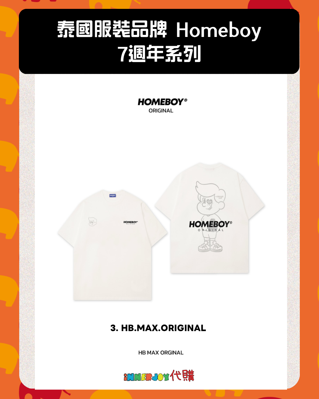 搶購 | EmiBonnie - Emi 同款 👕 泰國服裝品牌 Homeboy 7週年系列 【✨搶購商品如未能成功搶購將於七天內退款✨】 【商品內容】 1. HB.ORIGINAL.OVS.TEE (Black/White) M 胸寬 48" 衣長 29" L 胸寬 50" 衣長 30" XL 胸寬 52" 衣長 31" 2. HB.CLASSIC.OG.TANKTOP (Black/White) 3. HB.MAX.ORIGINAL 4. HB.SIDEKICKS.ORIGINAL M 胸寬 44" 衣長 28" L 胸寬 48" 衣長 29" XL 胸寬 52" 衣長 32" 5. HB.ZIGKY.ORIGINAL 6. HB.JACKET.ORIGINAL 7. HB.ORIGINAL.CAP Cap帽 8. HB.ORIGINAL.BEANIE 冷帽 9. HB.2PACK.ORIGINAL.SOCK 襪子 📌 International Customers Notice: If you are unsure about any product details, please contact us before placing your order. We’re happy to assist you! 🔸🔸🔸 Deadline|截止 : Until out of stock 售完即止 Earliest Delivery 預計最早發貨:下單後7-14日到港 🔸🔸🔸 ✨The product content is for reference only, and subject to the actual official sales situation. 📍商品內容僅供參考,一切以官方銷售實際情況作準。 ✨代購價格已包含泰國-香港路段國際郵費,香港本地可順豐到付,或到葵廣/旺角中心格仔鋪領取 ✨信用卡/八達通/ AlipayHK/WechatPay/Tap&Go/PayMe/ApplePay/GooglePay/Paypal/FPS/銀行轉帳✨ 🟠🟠🟠 Disclaimer: If the posting content infringes or violates your copyrights, please contact us immediately. 本公司並沒有持有任何品牌之版權,所有商標及版權均屬該品牌持有人,圖片及資料轉載只作分享用途,敬請留意。
