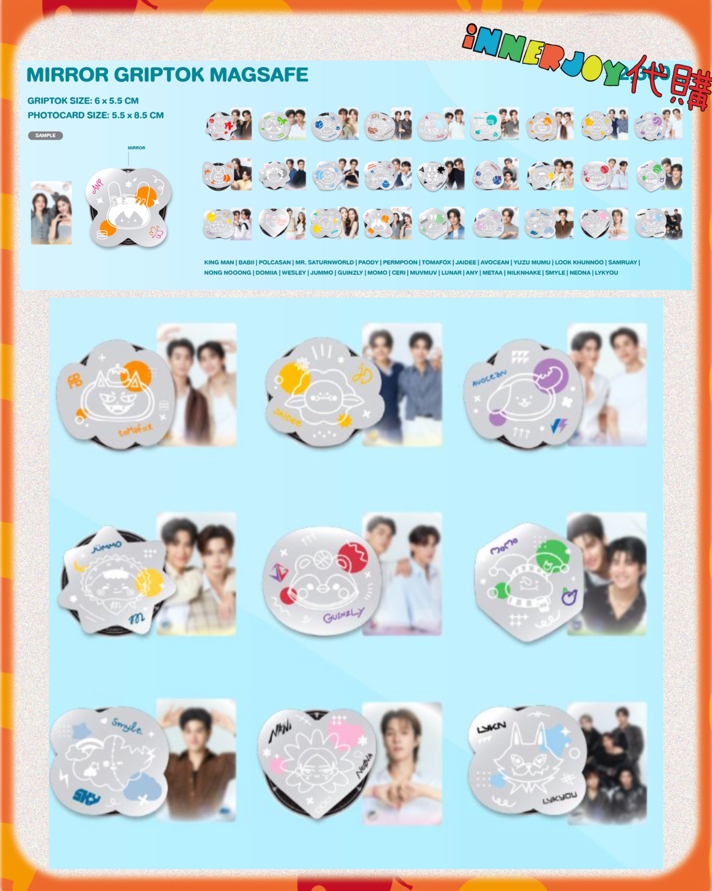 日本代購【Link 3 - 其他商品】 | GMMTV POP-UP STORE IN OSAKA 2025 GMMTV OFFICIAL MERCHANDISE GMM 官方周邊 【商品內容】 🔸Notepad Set 便條紙套裝 🔸Hair Scrunchie (Japanese Version) 日本版髮圈 🔸Book Cover 書套 🔸Card Holder Stand With Photocard 卡套立牌 🔸Hologram Pin 幻彩徽章 🔸Mirror Griptok Magsafe 手機支架鏡 📌 International Customers Notice: If you are unsure about any product details, please contact us before placing your order. We’re happy to assist you! 🔸🔸🔸 Deadline|截止 : 24/11/2025 18:00 Earliest Delivery 預計最早發貨:End of Dec 12月下旬 ■ 歡迎團購/合單|Group order is available. DM for details 凡購買 10 件以上,可領取團購優惠,歡迎粉絲和各大Fansclub查詢 🔸🔸🔸 書刊購買須知: ⭐運送過程中雜誌可能會有不可避免的磕碰折角,出版商可不作售後更換,如介意請慎買。 ⭐出版商可能隨時改動書本設計和內容, InnerjoyThailand不作另行通知 ⭐內地雜誌出現需要售後的情況較多和部分銷售方有機會不提供售後或走數,請細閱網站內代購條款之圖片,下單即視為同意和知悉相關情況。 ⚠️備註:裝置屏幕顯示與拍攝時的顏色可能有差異,實際產品和參考圖片可能略有不同,望知悉。 🔸🔸🔸 ✨The product content is for reference only, and subject to the actual official sales situation. 📍商品內容僅供參考,一切以官方銷售實際情況作準。 ✨代購價格已包含泰國-香港路段國際郵費,香港本地可順豐到付,或到葵廣/旺角中心格仔鋪領取 ✨信用卡/八達通/ AlipayHK/WechatPay/Tap&Go/PayMe/ApplePay/GooglePay/Paypal/FPS/銀行轉帳✨ 🟠🟠🟠 Disclaimer: If the posting content infringes or violates your copyrights, please contact us immediately. 本公司並沒有持有任何品牌之版權,所有商標及版權均屬該品牌持有人,圖片及資料轉載只作分享用途,敬請留意。