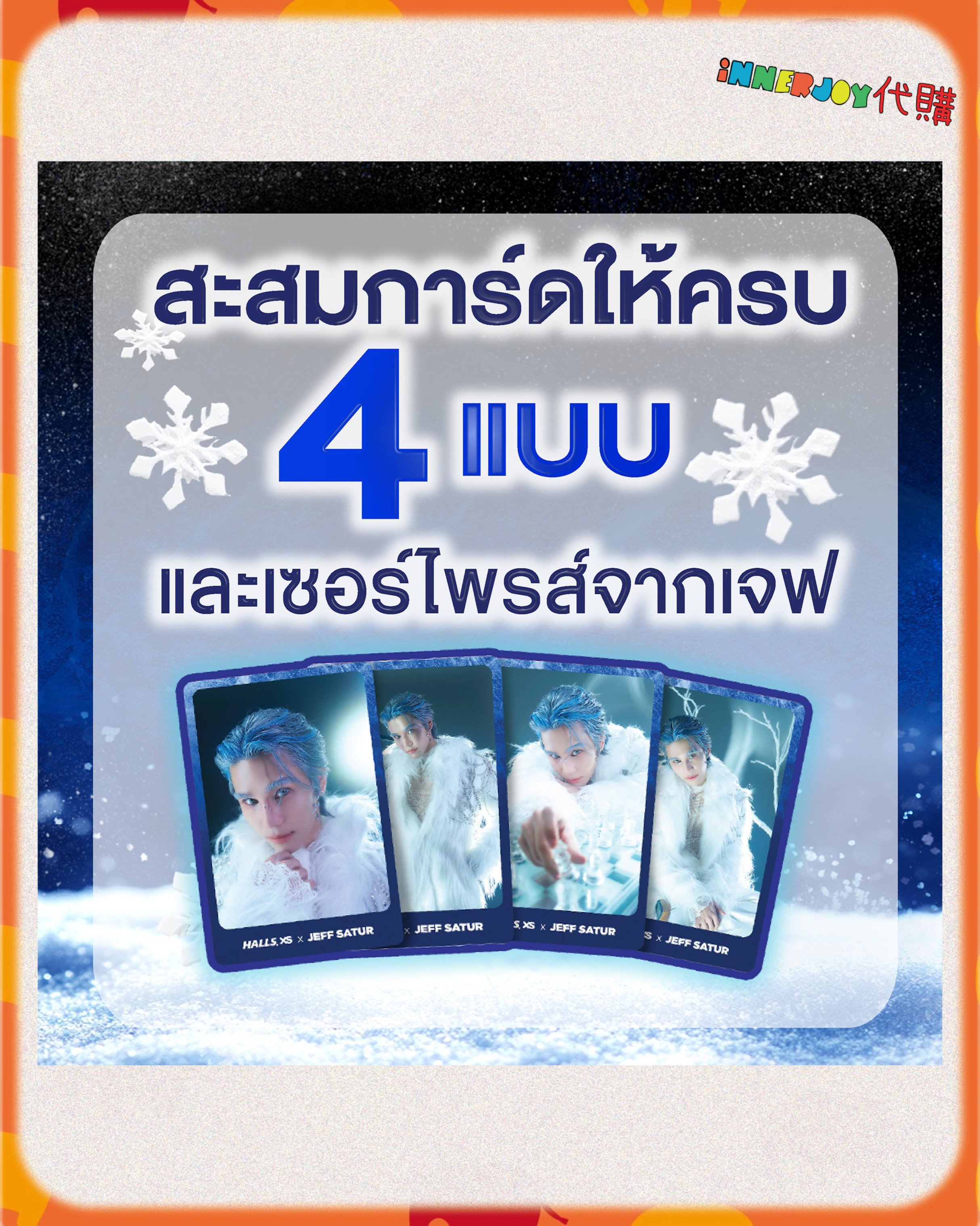 泰國現貨 (下單後7-14天到港) | Jeff Satur - 🎃 Halls XS x Jeff Satur 萬聖節限定版薄荷糖 【🎃萬聖節限定・潮爽登場】 Halls XS x Jeff Satur 聯名薄荷糖強勢來襲! 西瓜x薄荷雙重冰爽口感,無糖配方隨身享受❄️ ❄️特別版採用清甜西瓜混合冰涼薄荷配方,細細盒放喺袋仔超方便 無糖配方隨時食都唔怕肥! 每盒隨機附送JeffSatur靚仔相卡等你收集,真係甜過初戀又清涼透心✨! 【商品內容】 🧊1盒附送1張Jeff 隨機萬聖節系列小卡,共4款 🧊Halls XS 萬聖節限定版包含2種口味:Mentho Lyptus(薄荷味)及 Watermelon(西瓜味) 🧊購買多於一盒可能包含重複款式 📌 International Customers Notice: If you are unsure about any product details, please contact us before placing your order. We’re happy to assist you! 🟠 因按訂單採購,下單後不支持任何退貨/退款,請謹慎下單。 📍 最終解釋權均歸官方所有📍 ⚠️ 備註:裝置屏幕顯示與拍攝時的顏色可能有差異,實際產品和參考圖片可能略有不同,望知悉。 ✨由於匯率浮動,價格有機會有所更改,敬請注意 🔸🔸🔸 Deadline|截止 : 售完即止 Unitl out of stock Earliest Delivery 預計最早發貨:到貨後7 - 14日 🔸🔸🔸 ✨The product content is for reference only, and subject to the actual official sales situation. 📍商品內容僅供參考,一切以官方銷售實際情況作準。 ✨代購價格已包含泰國-香港路段國際郵費,香港本地可順豐到付,或到葵廣/旺角中心格仔鋪領取 ✨信用卡/八達通/ AlipayHK/WechatPay/Tap&Go/PayMe/ApplePay/GooglePay/Paypal/FPS/銀行轉帳✨ 🟠🟠🟠 Disclaimer: If the posting content infringes or violates your copyrights, please contact us immediately. 本公司並沒有持有任何品牌之版權,所有商標及版權均屬該品牌持有人,圖片及資料轉載只作分享用途,敬請留意。