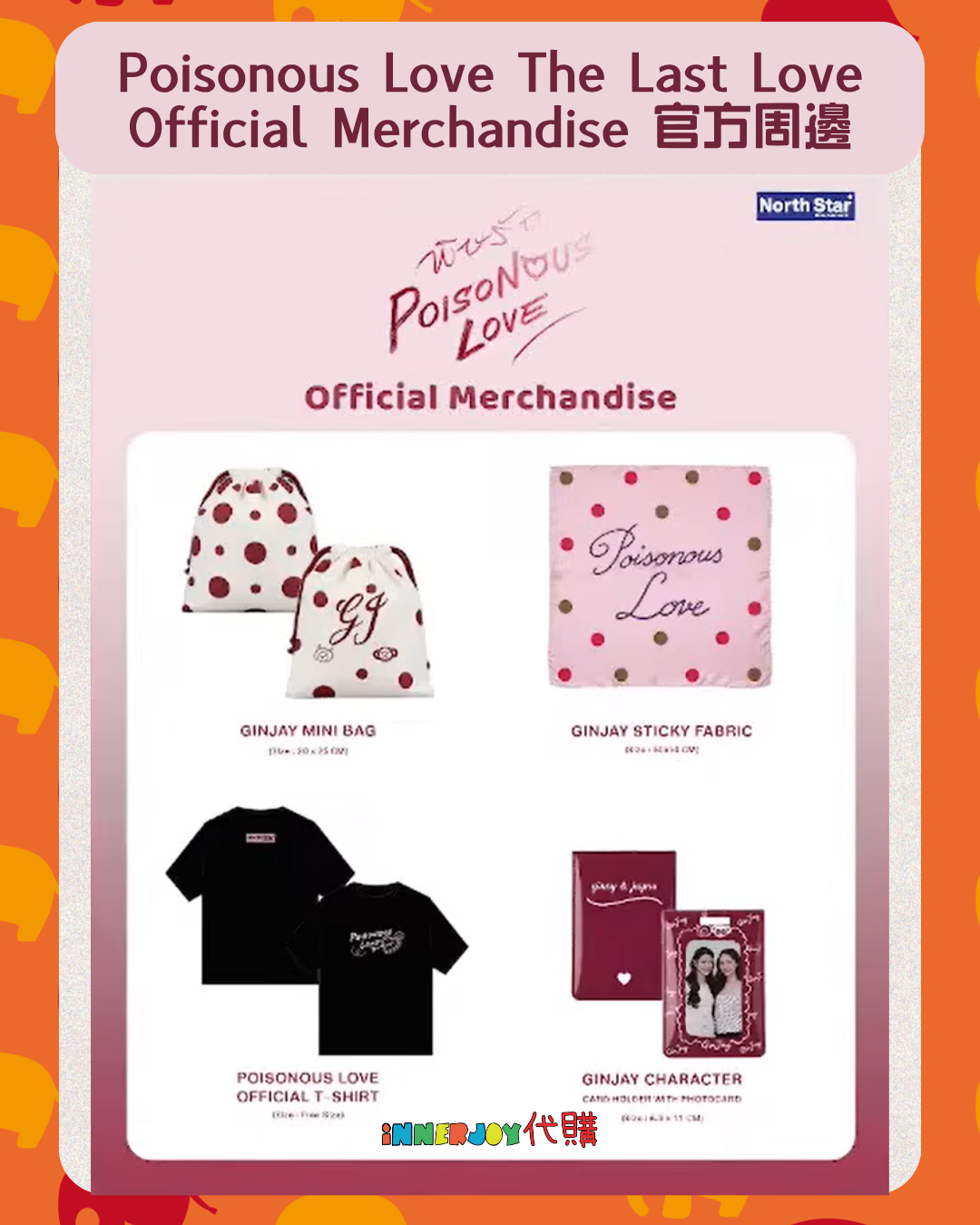 現場代購 | GinJay - Poisonous Love The Last Love Official Merchandise 官方周邊 【✨搶購商品如未能成功搶購將於七天內退款✨】 【商品內容】 🔸GinJay Mini Bag 🔸GinJay Sticky Fabric 🔸Official T-shirt 🔸GinJay Character Card Holder 📌 International Customers Notice: If you are unsure about any product details, please contact us before placing your order. We’re happy to assist you! 🔸🔸🔸 Deadline|截止 : 21/11/2025 18:00 Earliest Delivery 預計最早發貨:End of Nov 11月下旬 🔸🔸🔸 書刊購買須知: ⭐運送過程中雜誌可能會有不可避免的磕碰折角,出版商可不作售後更換,如介意請慎買。 ⭐出版商可能隨時改動書本設計和內容, InnerjoyThailand不作另行通知 ⭐內地雜誌出現需要售後的情況較多和部分銷售方有機會不提供售後或走數,請細閱網站內代購條款之圖片,下單即視為同意和知悉相關情況。 ⚠️備註:裝置屏幕顯示與拍攝時的顏色可能有差異,實際產品和參考圖片可能略有不同,望知悉。 🔸🔸🔸 ✨The product content is for reference only, and subject to the actual official sales situation. 📍商品內容僅供參考,一切以官方銷售實際情況作準。 ✨代購價格已包含泰國-香港路段國際郵費,香港本地可順豐到付,或到葵廣/旺角中心格仔鋪領取 ✨信用卡/八達通/ AlipayHK/WechatPay/Tap&Go/PayMe/ApplePay/GooglePay/Paypal/FPS/銀行轉帳✨ 🟠🟠🟠 Disclaimer: If the posting content infringes or violates your copyrights, please contact us immediately. 本公司並沒有持有任何品牌之版權,所有商標及版權均屬該品牌持有人,圖片及資料轉載只作分享用途,敬請留意。