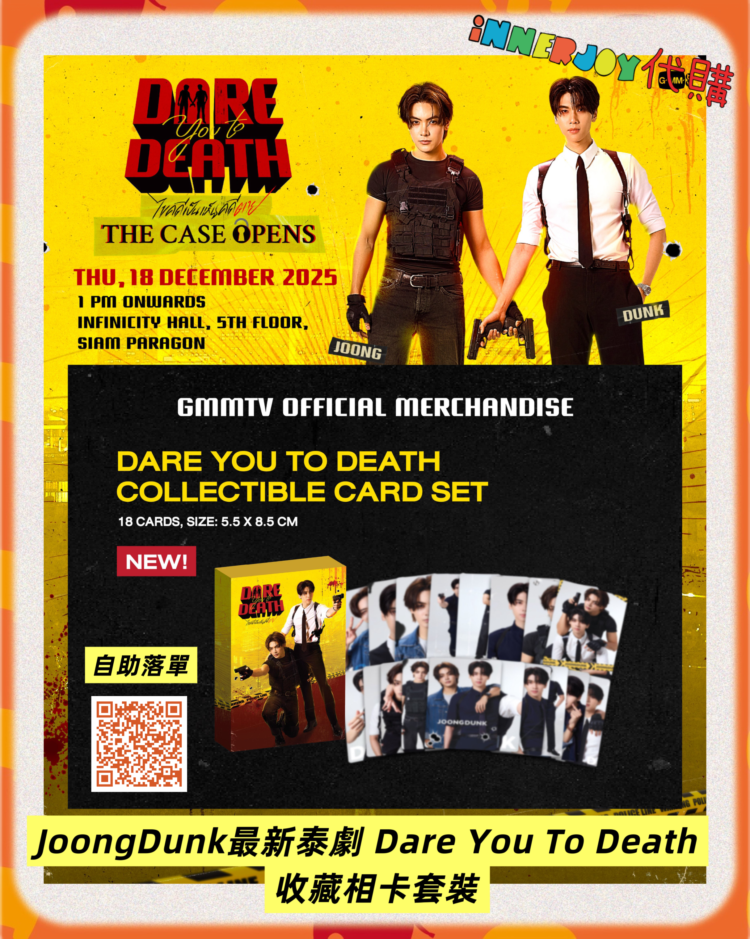 現場代購 | JoongDunk - Dare You To Death Collectible Card Set 收藏相卡套裝 【✨現場商品如未能成功搶購將於七天內退款✨】 【商品內容】 ✨ 內含18張5.5x8.5cm高質感演員Photocard ✨ 劇集海報設計典藏外盒 📌 International Customers Notice: If you are unsure about any product details, please contact us before placing your order. We’re happy to assist you! 📍最終解釋權均歸官方所有📍 ⚠️備註:裝置屏幕顯示與拍攝時的顏色可能有差異,實際產品和參考圖片可能略有不同,望知悉。 ✨由於匯率浮動,價格有機會有所更改,敬請注意 🔸🔸🔸 Deadline|截止 : 17/12/2025 18:00 Earliest Delivery 預計最早發貨:活動結束後 7 - 14日到港;官方如有延遲,如有更改將於限時動態(Story)內公佈。 🔸🔸🔸 書刊購買須知: ⭐運送過程中雜誌可能會有不可避免的磕碰折角,出版商可不作售後更換,如介意請慎買。 ⭐出版商可能隨時改動書本設計和內容, InnerjoyThailand不作另行通知 ⭐內地雜誌出現需要售後的情況較多和部分銷售方有機會不提供售後或走數,請細閱網站內代購條款之圖片,下單即視為同意和知悉相關情況。 ⚠️備註:裝置屏幕顯示與拍攝時的顏色可能有差異,實際產品和參考圖片可能略有不同,望知悉。 🔸🔸🔸 ✨The product content is for reference only, and subject to the actual official sales situation. 📍商品內容僅供參考,一切以官方銷售實際情況作準。 ✨代購價格已包含泰國-香港路段國際郵費,香港本地可順豐到付,或到葵廣/旺角中心格仔鋪領取 ✨信用卡/八達通/ AlipayHK/WechatPay/Tap&Go/PayMe/ApplePay/GooglePay/Paypal/FPS/銀行轉帳✨ 🟠🟠🟠 Disclaimer: If the posting content infringes or violates your copyrights, please contact us immediately. 本公司並沒有持有任何品牌之版權,所有商標及版權均屬該品牌持有人,圖片及資料轉載只作分享用途,敬請留意。