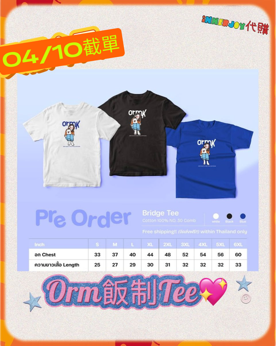 第二團預購 | LingOrm - Orm飯制Tee💖 【✨如未能成功代購,將於通知後安排七天內退款✨】 【顏色選擇 Color 】 💖 黑色 Black 💖 白色 White 💖 藍色 Blue 【尺寸選擇 Size 】 S - 6XL 📌 International Customers Notice: If you are unsure about any product details, please contact us before placing your order. We’re happy to assist you! 🟠 因按訂單採購,下單後不支持任何退貨/退款,請謹慎下單。 【✨如遇官方滿額截單,將於通知後7個工作天安排退款✨】 📍 最終解釋權均歸官方所有📍 ⚠️ 備註:裝置屏幕顯示與拍攝時的顏色可能有差異,實際產品和參考圖片可能略有不同,望知悉。 🔸🔸🔸 Deadline|截止 : 04/10/2025 18:00 Earliest Delivery 預計最早發貨:TBC;或有延遲,如有更改將於限時動態(Story)內公佈。 🔸🔸🔸 ✨The product content is for reference only, and subject to the actual official sales situation. 📍商品內容僅供參考,一切以官方銷售實際情況作準。 ✨代購價格已包含泰國-香港路段國際郵費,香港本地可順豐到付,或到葵廣/旺角中心格仔鋪領取 ✨信用卡/八達通/ AlipayHK/WechatPay/Tap&Go/PayMe/ApplePay/GooglePay/Paypal/FPS/銀行轉帳✨ 🟠🟠🟠 Disclaimer: If the posting content infringes or violates your copyrights, please contact us immediately. 本公司並沒有持有任何品牌之版權,所有商標及版權均屬該品牌持有人,圖片及資料轉載只作分享用途,敬請留意。