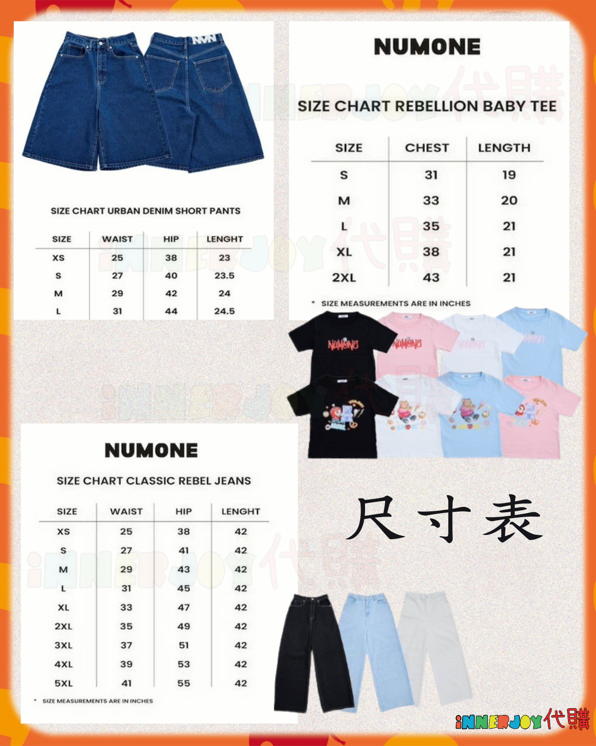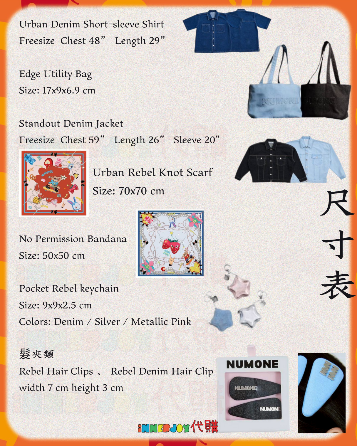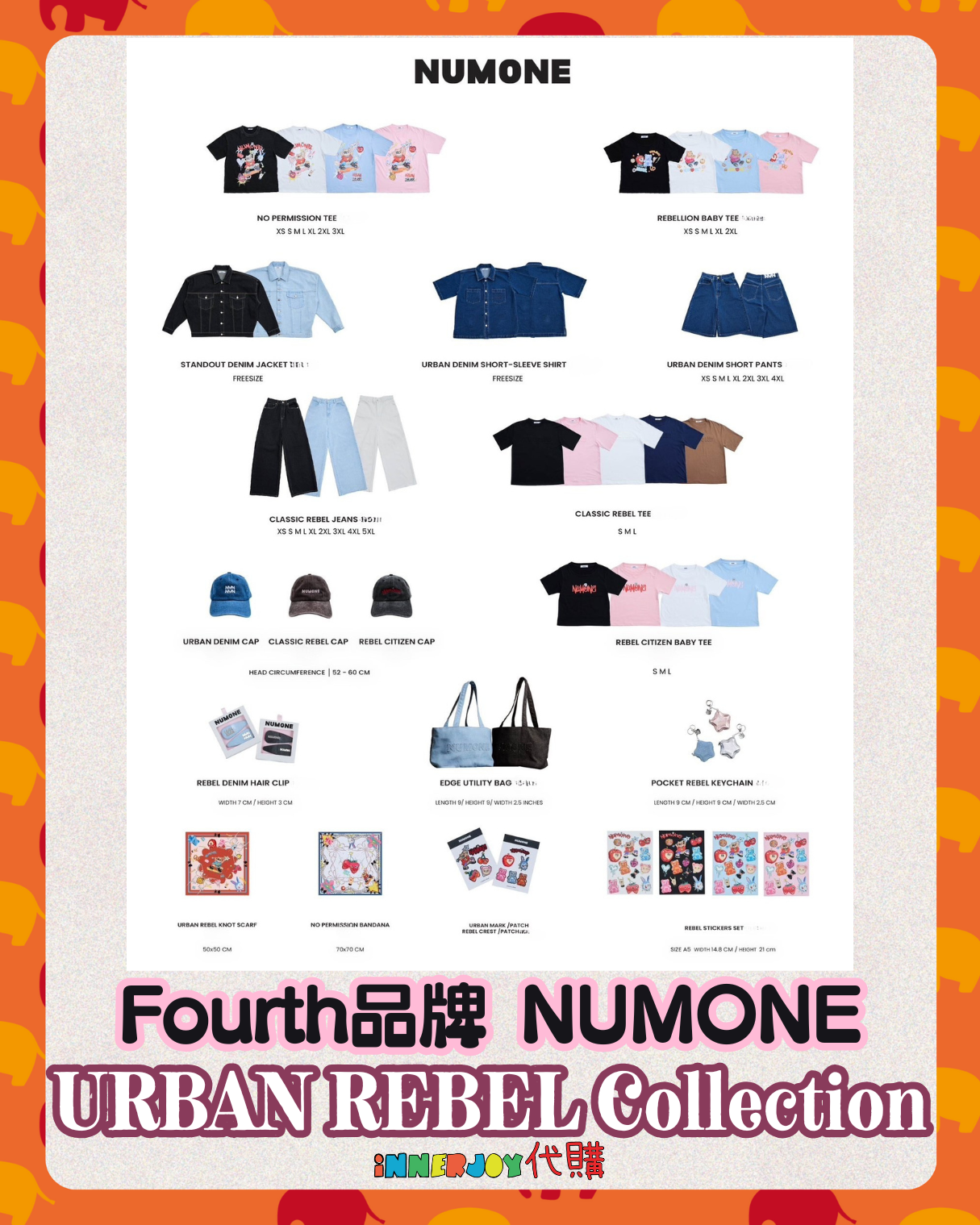 泰星代購 | GeminiFourth Fourth 個人品牌 NUMONE - URBAN REBEL Collection 【如遇泰國限量缺貨,將通知後7天內安排退款】 【根據訂單次序派貨】 【商品種類:19 款】 Urban Denim Short-Sleeve Shirt : One Size Classic Rebel jeans : Black / White / Light Blue : XS -5XL Edge Utility bag : Blue Denim/ Black Denim Rebel Stickers Set Standout Denim Jacket : Black / Blue Urban Denim Short : XS - 4XL Rebellion Baby Tee : Pink / White / Black / Blue: XS -3XL No Permission Tee : Pink / White / Black / Blue: XS -2XL Urban Rebel Knot (scarf) No permission Bandana Urban Denim Cap Rebel citizen Cap Classic rebel Cap Rebel Crest /Patch : Set 1 Rebel / Set 2 Urban Pocket Rebel Keychain : Silver / Pink / Denim Rebel Hair Clip : Black Rebel denim hair clip : Blue Classic rebel tee : Navy / White / Black / Brown / Pink : S - L Rebel Citizen Baby tee : White / Pink / Black / Blue : S - L 🔸🔸🔸 Deadline|截止 : 泰國現貨有限,售完即止 While Stocks Last Earliest Delivery 預計最早發貨:TBC , 到貨後7-21天發貨 ■ 歡迎團購/合單|Group order is available. DM for details 凡購買 10 件以上,可領取團購優惠,歡迎粉絲和各大Fansclub查詢 🔸🔸🔸 書刊購買須知: ⭐運送過程中雜誌可能會有不可避免的磕碰折角,出版商可不作售後更換,如介意請慎買。 ⭐出版商可能隨時改動書本設計和內容, InnerjoyThailand不作另行通知 ⭐內地雜誌出現需要售後的情況較多和部分銷售方有機會不提供售後或走數,請細閱網站內代購條款之圖片,下單即視為同意和知悉相關情況。 ⚠️備註:裝置屏幕顯示與拍攝時的顏色可能有差異,實際產品和參考圖片可能略有不同,望知悉。 🔸🔸🔸 ✨The product content is for reference only, and subject to the actual official sales situation. 📍商品內容僅供參考,一切以官方銷售實際情況作準。 ✨代購價格已包含泰國-香港路段國際郵費,香港本地可順豐到付,或到葵廣/旺角中心格仔鋪領取 ✨信用卡/八達通/ AlipayHK/WechatPay/Tap&Go/PayMe/ApplePay/GooglePay/Paypal/FPS/銀行轉帳✨ 🟠🟠🟠 Disclaimer: If the posting content infringes or violates your copyrights, please contact us immediately. 本公司並沒有持有任何品牌之版權,所有商標及版權均屬該品牌持有人,圖片及資料轉載只作分享用途,敬請留意。