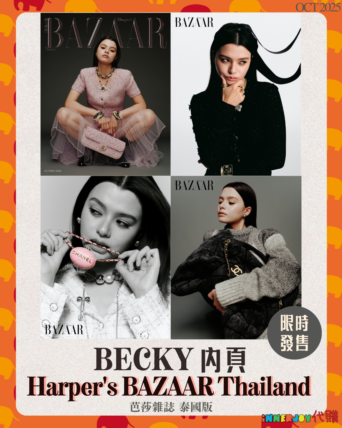 泰星雜誌 | FreenBecky - Becky x Harper's BAZAAR Singapore OCT 2025 10月號 芭莎 泰國雜誌 【✨商品如遇缺貨,將於通知後七天內退款✨】 【📝限量產品將按訂單次序派貨】 封面 Cover : Nychaa x Saint Laurent 內頁 : Becky x CHANEL 秋冬系列 F/W 2025-26 Nychaa 以自信十足的造型,演繹 Saint Laurent 2025秋季系列,登上《Harper's Bazaar》泰國版2025年10月號封面,展現了新時代女性的形象。 才華洋溢的Becky精彩亮相泰國版Harper's Bazaar 2025年10月號內頁,演繹CHANEL 2025-26秋冬系列。以超大珍珠鞋跟點綴雙C標誌的高跟鞋等單品,透過緞帶與花朵重新詮釋女性魅力,在充滿想像力的畫面中展現自信風采與多變表現力。 *圖片僅供參考,雜誌內容最終由官方安排* ======================= 代購雜誌須知: ⚠️雜誌封面材質關係,因無法完全排除與外部環境因素接觸與摩擦,產品表面可能會因此出現細微刮痕、小點、印痕等情況,這屬於出廠、搬運、物流運輸等過程中難以避免的正常現象,並不影響商品的使用與其主要功能。因此,大部分雜誌商不願為上述之情況負責和提供售後,介意者請謹慎購買。 📍書刊注意:可能會因運送過程有不可避免的磕碰或折角,如介意請慎買。 🔸🔸🔸 Deadline|截止 : 08/10/2025 18:00 , 其後視乎情況再上架; 售完即止 Earliest Delivery 預計最早發貨:11月上旬 Early NOV ,到貨後7 - 14日 ■ 歡迎團購/合單|Group order is available. DM for details 凡購買 10 件以上,可領取團購優惠,歡迎粉絲和各大Fansclub查詢 🔸🔸🔸 書刊購買須知: ⭐運送過程中雜誌可能會有不可避免的磕碰折角,出版商可不作售後更換,如介意請慎買。 ⭐出版商可能隨時改動書本設計和內容, InnerjoyThailand不作另行通知 ⭐內地雜誌出現需要售後的情況較多和部分銷售方有機會不提供售後或走數,請細閱網站內代購條款之圖片,下單即視為同意和知悉相關情況。 ⚠️備註:裝置屏幕顯示與拍攝時的顏色可能有差異,實際產品和參考圖片可能略有不同,望知悉。 🔸🔸🔸 ✨The product content is for reference only, and subject to the actual official sales situation. 📍商品內容僅供參考,一切以官方銷售實際情況作準。 ✨代購價格已包含泰國-香港路段國際郵費,香港本地可順豐到付,或到葵廣/旺角中心格仔鋪領取 ✨信用卡/八達通/ AlipayHK/WechatPay/Tap&Go/PayMe/ApplePay/GooglePay/Paypal/FPS/銀行轉帳✨ 🟠🟠🟠 Disclaimer: If the posting content infringes or violates your copyrights, please contact us immediately. 本公司並沒有持有任何品牌之版權,所有商標及版權均屬該品牌持有人,圖片及資料轉載只作分享用途,敬請留意。
