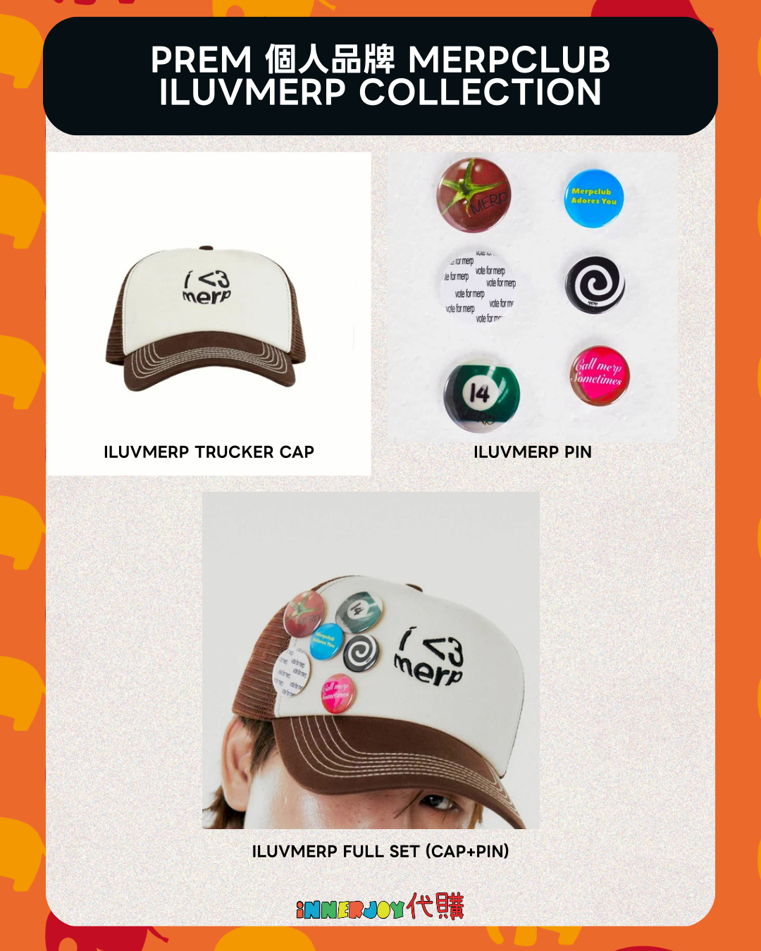 預購 | BounPrem - Prem 個人品牌 MERPCLUB iluvmerp collection 系列 請注意:閣下一旦成功提交訂單,即表示了解並同意是次訂購之運送安排、付款須知及條款細則。請確保訂購數量及選項資料完全正確;訂單一經提交後不能取消,並不設任何退款及更改。 【商品內容】 - iluvmerp Trucker Cap - iluvmerp Pin - iluvmerp full set (Cap+Pin) 📌 International Customers Notice: If you are unsure about any product details, please contact us before placing your order. We’re happy to assist you! 🔸🔸🔸 Deadline|截止 : 11/01/2026 18:00 Earliest Delivery 預計最早發貨:End of March 3月下旬 🔸🔸🔸 ✨The product content is for reference only, and subject to the actual official sales situation. 📍商品內容僅供參考,一切以官方銷售實際情況作準。 ✨代購價格已包含泰國-香港路段國際郵費,香港本地可順豐到付,或到葵廣/旺角中心格仔鋪領取 ✨信用卡/八達通/ AlipayHK/WechatPay/Tap&Go/PayMe/ApplePay/GooglePay/Paypal/FPS/銀行轉帳✨ 🟠🟠🟠 Disclaimer: If the posting content infringes or violates your copyrights, please contact us immediately. 本公司並沒有持有任何品牌之版權,所有商標及版權均屬該品牌持有人,圖片及資料轉載只作分享用途,敬請留意。