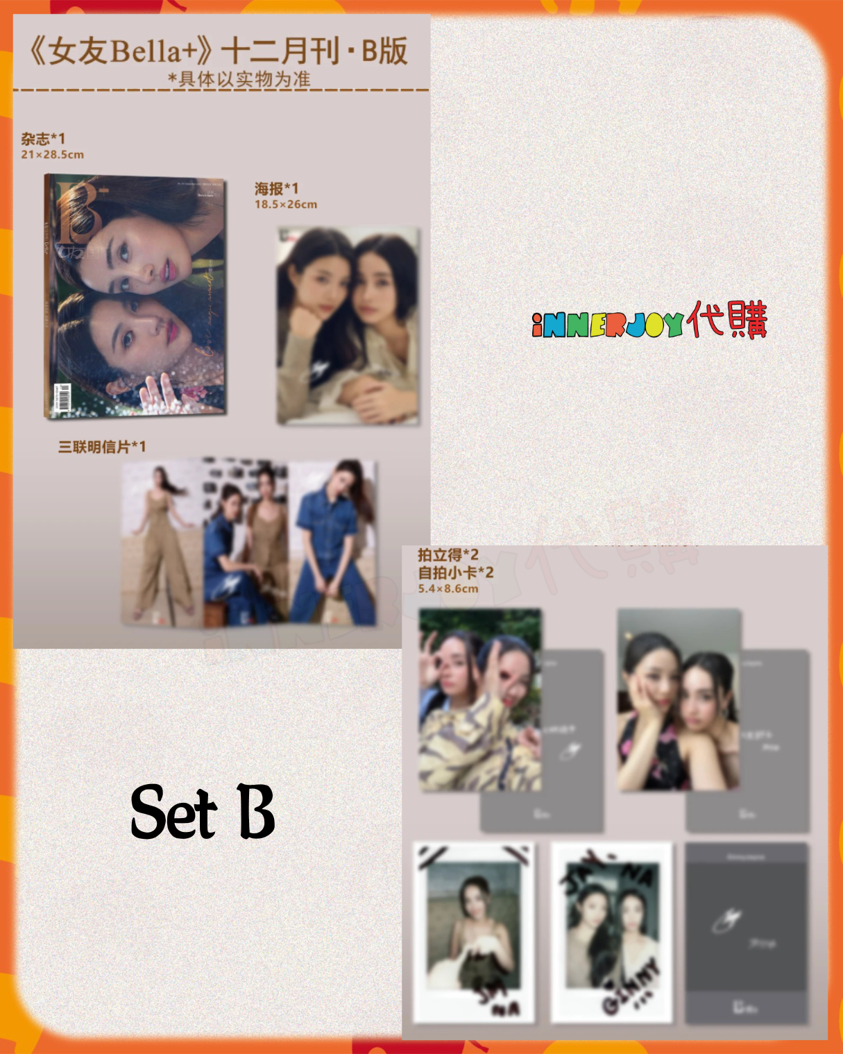 💝 Set A : Cover A Magazine*1+ Ver.A POSTER*1 + Ver.A Selfie Photocard*2 + Ver.A Polaroid Card*2 + Ver.A Postcard*1💝 Set B :Cover B Magazine*1+ Ver.B POSTER*1 + Ver.B Selfie Photocard*2 + Ver.B Polaroid Card*2 + Ver.B Postcard*1💝 Set C : Cover A+ Cover B Magazine*1+ Poster A&B + Selfie Photocard*8 + Polaroid Card*8 + Postcard*2