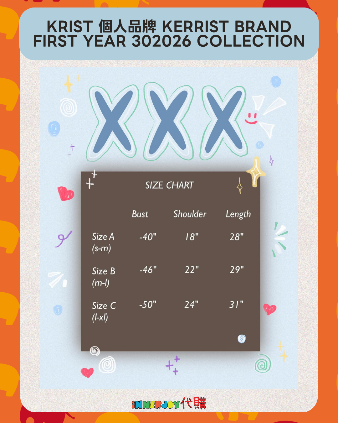 預購 | KristSingto - Krist 個人品牌 KERRIST BRAND ✨ First Year 302026 Collection 【✨搶購商品如未能成功搶購將於七天內退款✨】 請注意:閣下一旦成功提交訂單,即表示了解並同意是次訂購之運送安排、付款須知及條款細則。請確保訂購數量及選項資料完全正確;訂單一經提交後不能取消,並不設任何退款及更改。 【商品內容】 Color 顏色 : Pink 粉紅色 / White 白色 / Black 黑色 Size 尺碼 : 【Size A】Bust 胸寬 40" Shoulder 肩寬 18" Length 衣長 28" 【Size B】Bust 胸寬 46" Shoulder 肩寬 22" Length 衣長 29" 【Size C】Bust 胸寬 50" Shoulder 肩寬 24" Length 衣長 31" 📌 International Customers Notice: If you are unsure about any product details, please contact us before placing your order. We’re happy to assist you! 🔸🔸🔸 Deadline|截止 : 09/01/2026 18:00 Earliest Delivery 預計最早發貨:TBC 未定 🔸🔸🔸 ✨The product content is for reference only, and subject to the actual official sales situation. 📍商品內容僅供參考,一切以官方銷售實際情況作準。 ✨代購價格已包含泰國-香港路段國際郵費,香港本地可順豐到付,或到葵廣/旺角中心格仔鋪領取 ✨信用卡/八達通/ AlipayHK/WechatPay/Tap&Go/PayMe/ApplePay/GooglePay/Paypal/FPS/銀行轉帳✨ 🟠🟠🟠 Disclaimer: If the posting content infringes or violates your copyrights, please contact us immediately. 本公司並沒有持有任何品牌之版權,所有商標及版權均屬該品牌持有人,圖片及資料轉載只作分享用途,敬請留意。