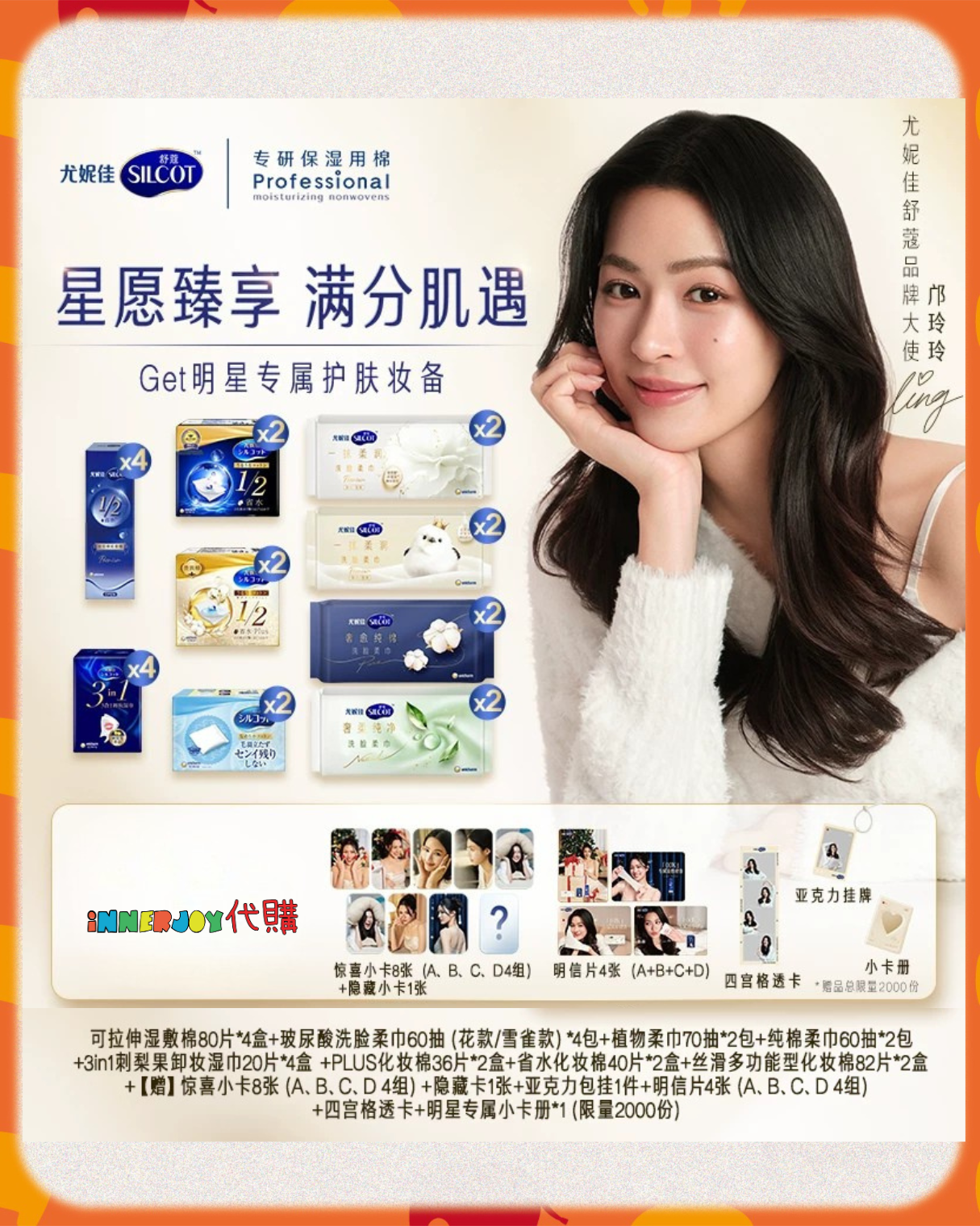 預購 | LingOrm - LingLing X 尤妮佳【00K專屬專屬妝備收藏套裝🧼】 【✨搶購商品如未能成功搶購將於七天內退款✨】 請注意:閣下一旦成功提交訂單,即表示了解並同意是次訂購之運送安排、付款須知及條款細則。請確保訂購數量及選項資料完全正確;訂單一經提交後不能取消,並不設任何退款及更改。 ✨ 追隨LingLingKwong的同款儀式感,讓肌膚體驗溫柔以待 ✨ 一份為「光」準備的水潤心意已抵達 💌 無論是卸下緊繃的夜間儀式,還是妝前水潤的秘密, 這裡都有LingLingKwong保持肌膚好狀態的溫柔同款 🌙 你的日常,值得一場溫柔儀式。 ⬇️ 立即選擇你的專屬妝備 ⬇️ #LingBrandAmbassadorSilcot 【【【【【【商品選擇:5款,其中2款已售罄!】】】】】 📦【1.專屬星品妝備】🌟 內容物: ✨ 可拉伸化妝棉 ×1 💧 玻尿酸洗臉柔巾 ×1 🧴 卸妝濕巾 ×1 🃏 A款小卡 ×2 ✉️ A款明信片 ×1 📦【2.專屬濕敷妝備】💦 內容物: ✨ 可拉伸化妝棉 ×2 💧 1/2省水化妝棉 ×1 💎 1/2省水plus化妝棉 ×1 🪞 絲滑多功能型化妝棉 ×1 🃏 B款小卡 ×2 ✉️ B款明信片 ×1 (已售罄)📦【3.專屬洗臉妝備】🧼 內容物: 🌿 天然植物洗臉柔巾 ×1 💧 玻尿酸洗臉柔巾 ×1 ☁️ 純棉洗臉柔巾 ×1 🃏 C款小卡 ×2 ✉️ C款明信片 ×1 📦【4.專屬卸妝妝備】🫧 內容物: 🧴 卸妝濕巾 ×12 🃏 D款小卡 ×2 ✉️ D款明信片 ×1 📦【5.專屬真愛妝備】💝 內容物: ✨ 可拉伸化妝棉 ×4 💧 玻尿酸洗臉柔巾 ×4 🧴 卸妝濕巾 ×4 💧 1/2省水化妝棉 ×2 💎 1/2省水plus化妝棉 ×2 🪞 絲滑多功能型化妝棉 ×2 🌿 天然植物洗臉柔巾 ×2 ☁️ 純棉洗臉柔巾 ×2 🃏 全套小卡 ×9 ✉️ 全套明信片 ×4 🏷️ 亞加力掛牌 ×1 🎴 四官格透卡 ×1 📒 小卡簿 ×1 ✅ 同款儀式感:貼近 LingLing 日常護膚步驟。 ✅ 溫柔高效設計:可拉伸、省水、柔膚觸感,細節全是心意。 ✅ 限量周邊收藏:每款妝備附專屬小卡明信片,珍藏與 LingLing 的溫柔連結 📌 International Customers Notice: If you are unsure about any product details, please contact us before placing your order. We’re happy to assist you! 🔸🔸🔸 Deadline|截止 : 24/12/2025 18:00,視乎庫存,再維持上架狀態 Earliest Delivery 預計最早發貨:官方未確定TBC,到貨後7 - 14日 🔸🔸🔸 ✨The product content is for reference only, and subject to the actual official sales situation. 📍商品內容僅供參考,一切以官方銷售實際情況作準。 ✨代購價格已包含泰國-香港路段國際郵費,香港本地可順豐到付,或到葵廣/旺角中心格仔鋪領取 ✨信用卡/八達通/ AlipayHK/WechatPay/Tap&Go/PayMe/ApplePay/GooglePay/Paypal/FPS/銀行轉帳✨ 🟠🟠🟠 Disclaimer: If the posting content infringes or violates your copyrights, please contact us immediately. 本公司並沒有持有任何品牌之版權,所有商標及版權均屬該品牌持有人,圖片及資料轉載只作分享用途,敬請留意。