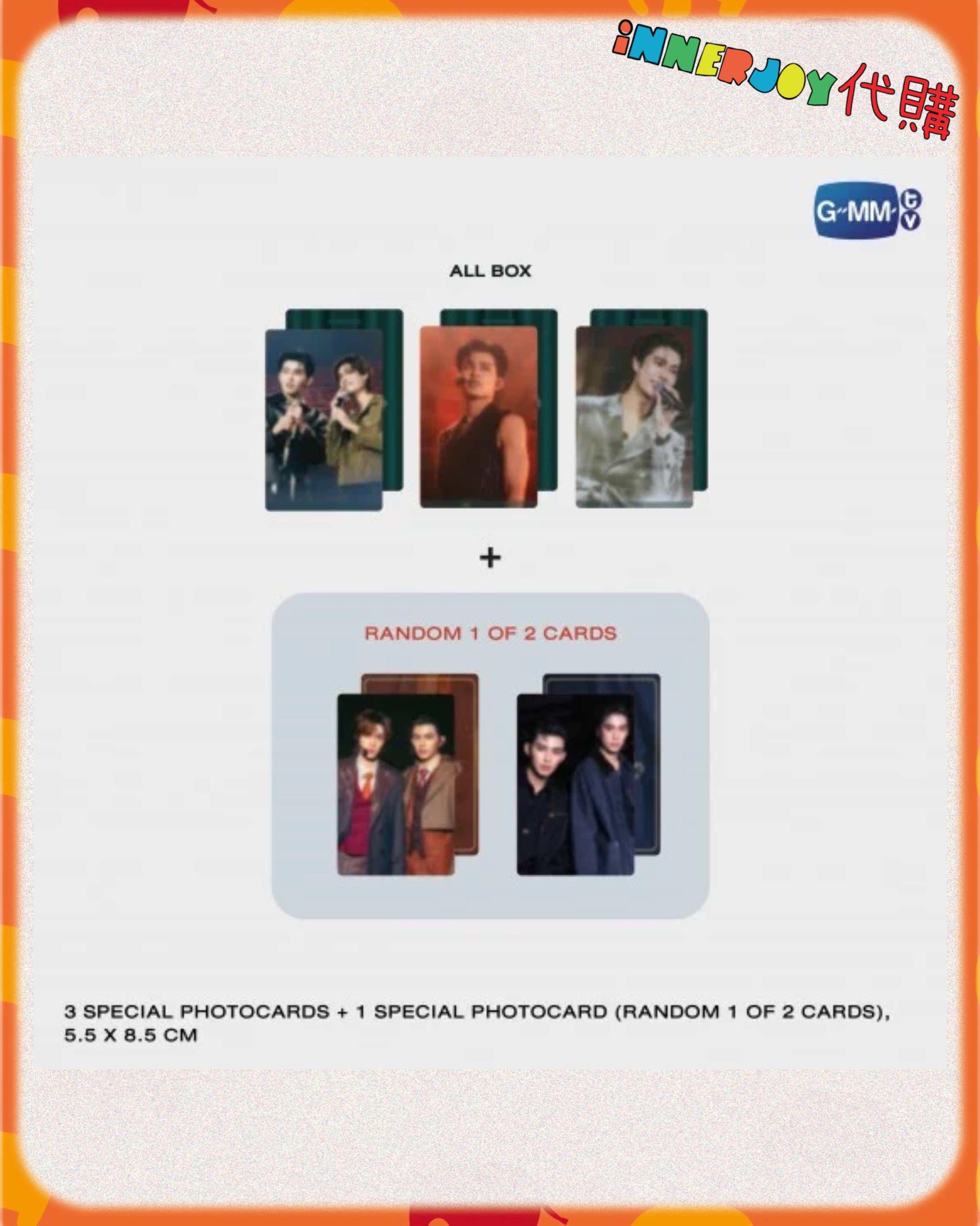 - Special Photocards: Set of 4 (includes 1 randomly selected card out of 2 designs), 5.5 x 8.5 cm